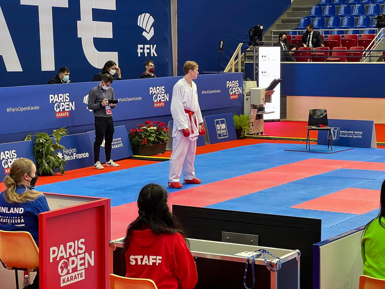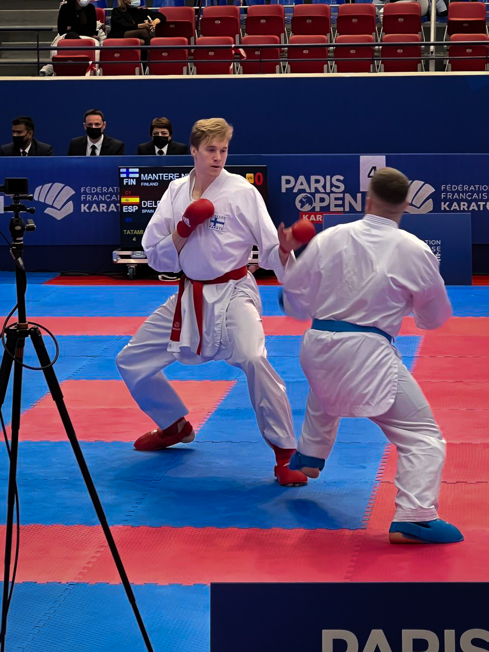 Hämeenlinnan Karateseuran Niko Mantere otteli perjantaina Ranskassa Paris Open kilpailussa.